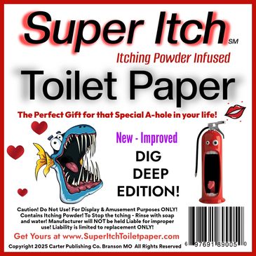 'Super Itch Toilet Paper' is owned (along with this web site and Domain) by Harold ('Grandpa') Carter of Carter Publishing Co. of Branson, MO. We are passionate about all of our new product ideas! We love humor and Super Itch Toilet Paper is always an instant SUCCESS! It's like Instant Happiness and ear to ear smiles whenever anyone see's this product! Get The Best Super Funny Gag Gift!